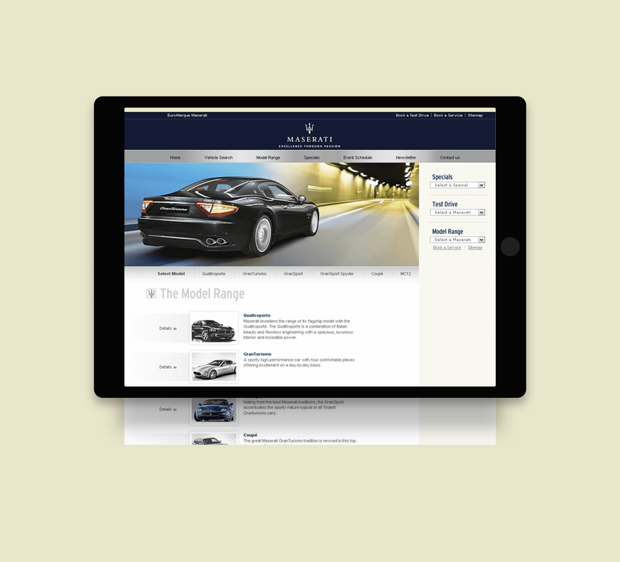 ViewDynamic Maserati dealership website displays live vehicle listings and Maserati news